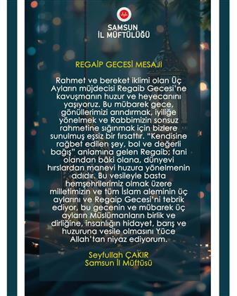 İl Müftümüz Sn. Seyfullah Çakır'ın Regaib Kandili Mesajı...