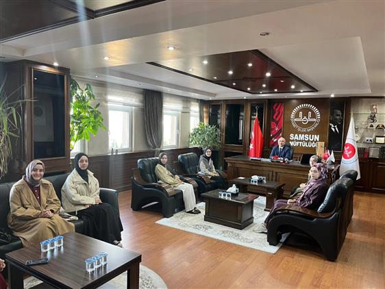 Ondokuz Mayıs Üniversitesi İlahiyat Fakültesi stajyer öğrencileri, İl Müftümüz Seyfullah Çakır' ı makamında ziyaret etti. İl Müftümüz gençlerle hasbihal ederek, onlara tavsiyelerde bulundu.