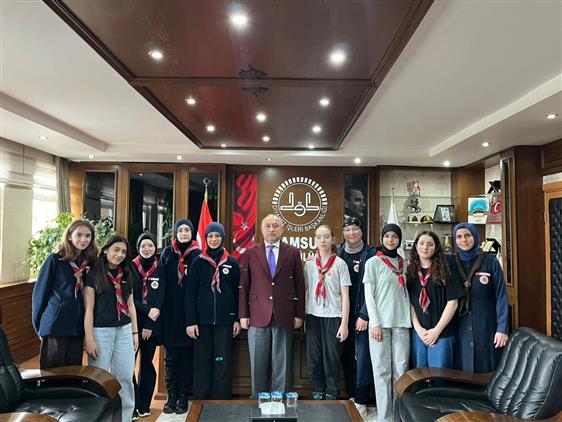 Samsun Diyanet İzcilik Spor Kulübünün 9 izcisi liderleri ile birlikte İl Müftümüz Seyfullah Çakır' ı makamında ziyaret etti.